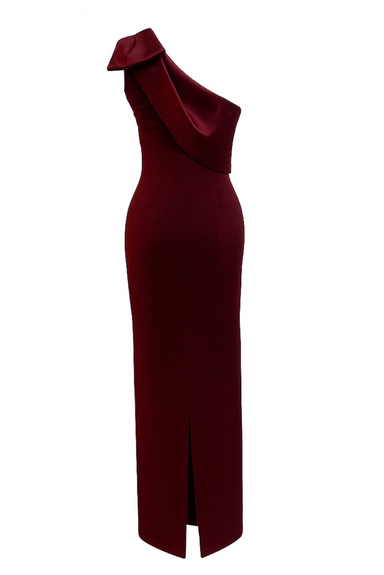 Tek Omuz Saten Fiyonk Detaylı Krep Maxi Abiye Elbise